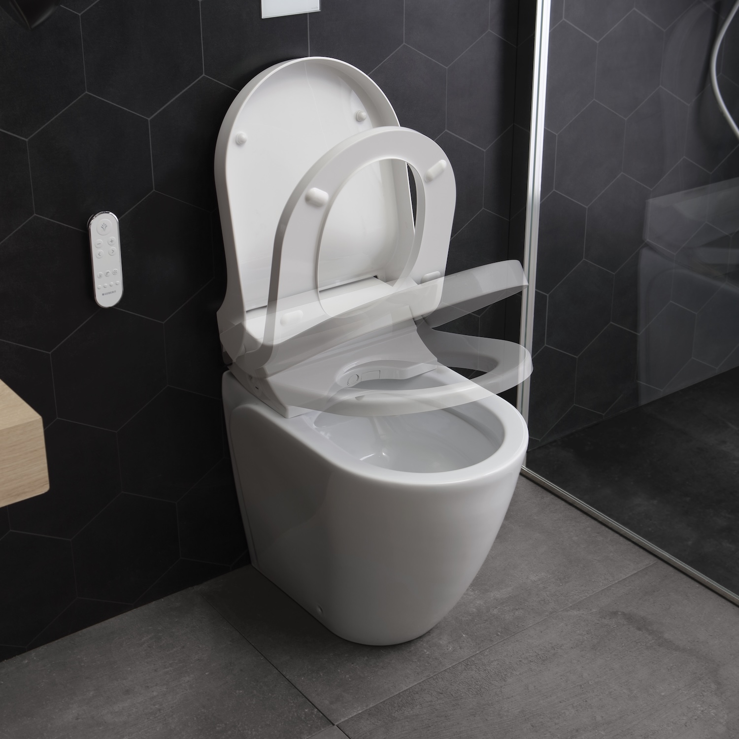 Possiede funzioni di comfort come il riscaldamento del sedile e un asciugatore ad aria calda. Altre impostazioni specifiche per l’utente quali la posizione dell’astina dell’erogatore, l’oscillazione o l’intensità del getto possono essere impostati in base alle esigenze personali e memorizzate mediante il telecomando ergonomico.